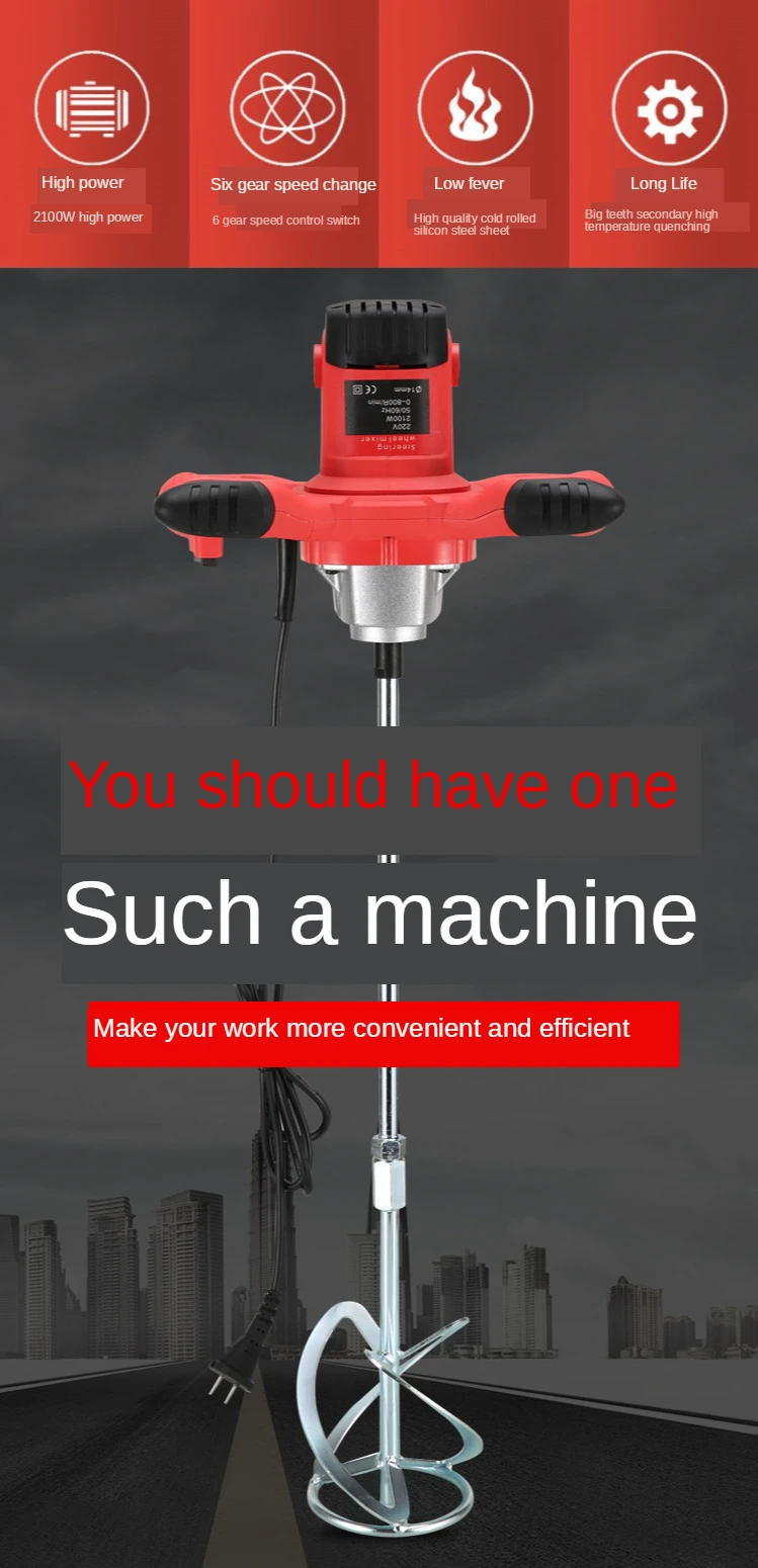 110 В/220 В промышленный электрический миксер 6 скоростей Регулируемая скорость 2100 Вт миксер для краски цемент шпатлевка порошок миксер для краски