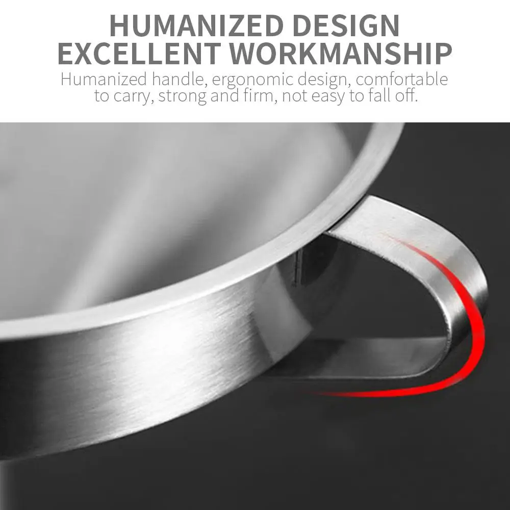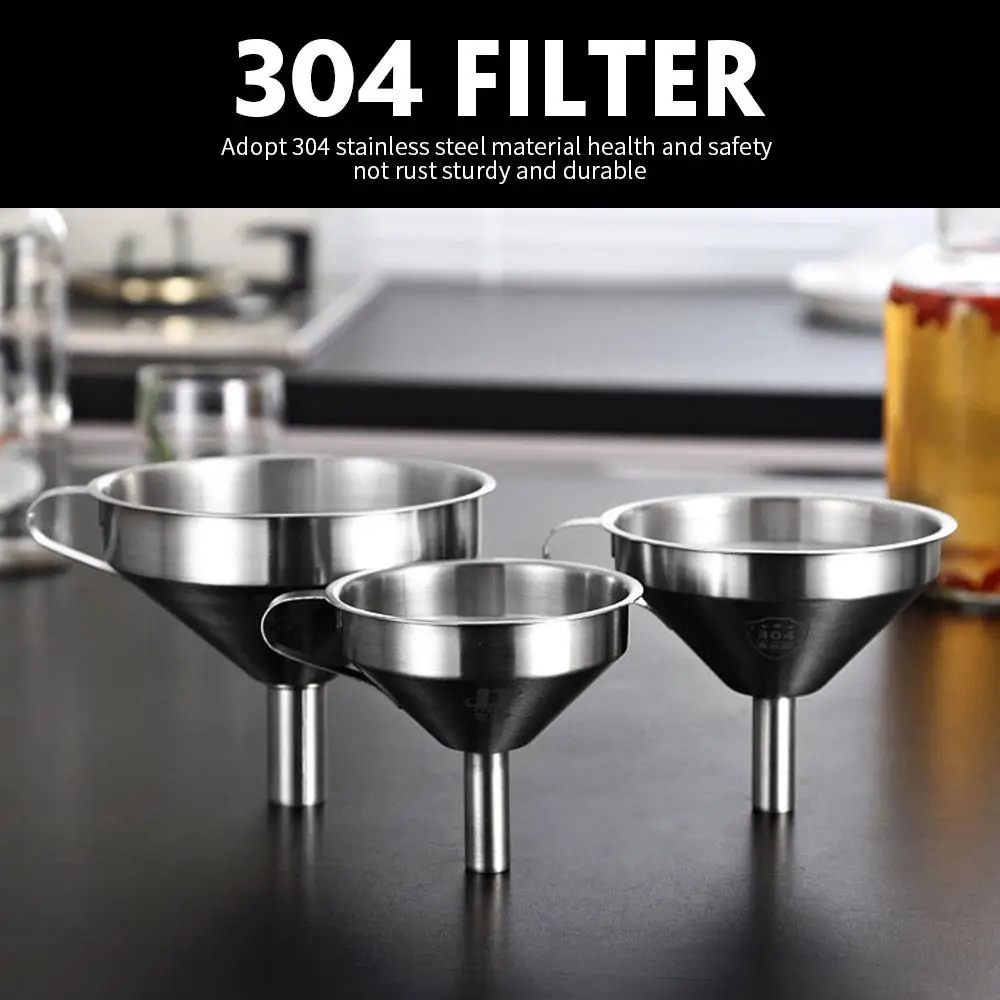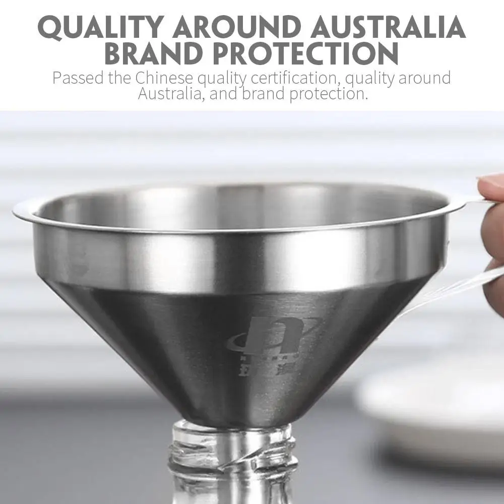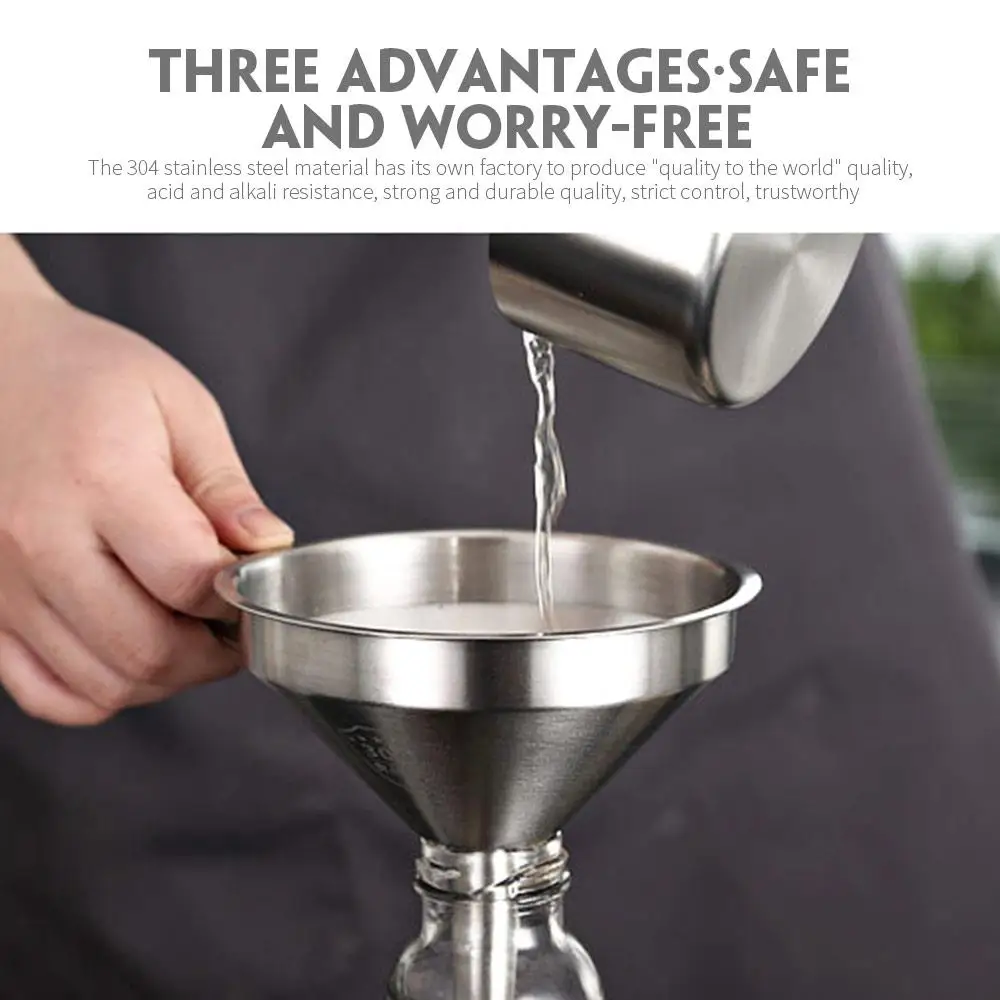 Прочная Воронка Из Нержавеющей Стали изготовлена из 100% пищевой высококачественной нержавеющей стали 304 с практичной ручкой и предотвращает скольжение. Профессиональная безопасная для пищевых продуктов Воронка Из Нержавеющей Стали сопротивляется разрыву, изгибу, ржавчине и коррозии и остается красиво и безопасно с вами в течение многих лет.