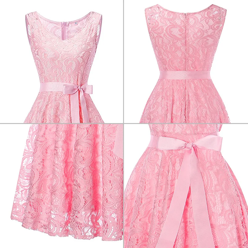 Цветочное кружевное Плиссированное винтажное платье 2020 женские элегантные вечерние платья без рукавов с v-образным вырезом