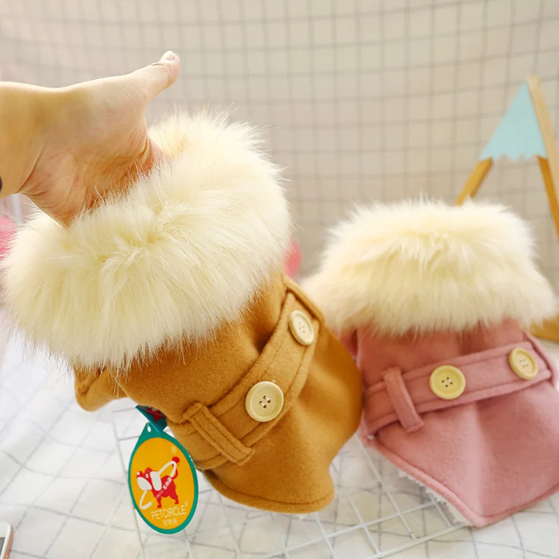 Большой меховой воротник, одежда для собак, зимние теплые куртки для собак, щенков, розового, кофейного цвета, маленьких животных, снежной кошки, пуховая одежда, Прямая поставка