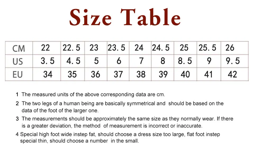 ✿Пожалуйста, выберите правильный размер в соответствии с длиной Вашей стопы и нашей таблицей размеров.