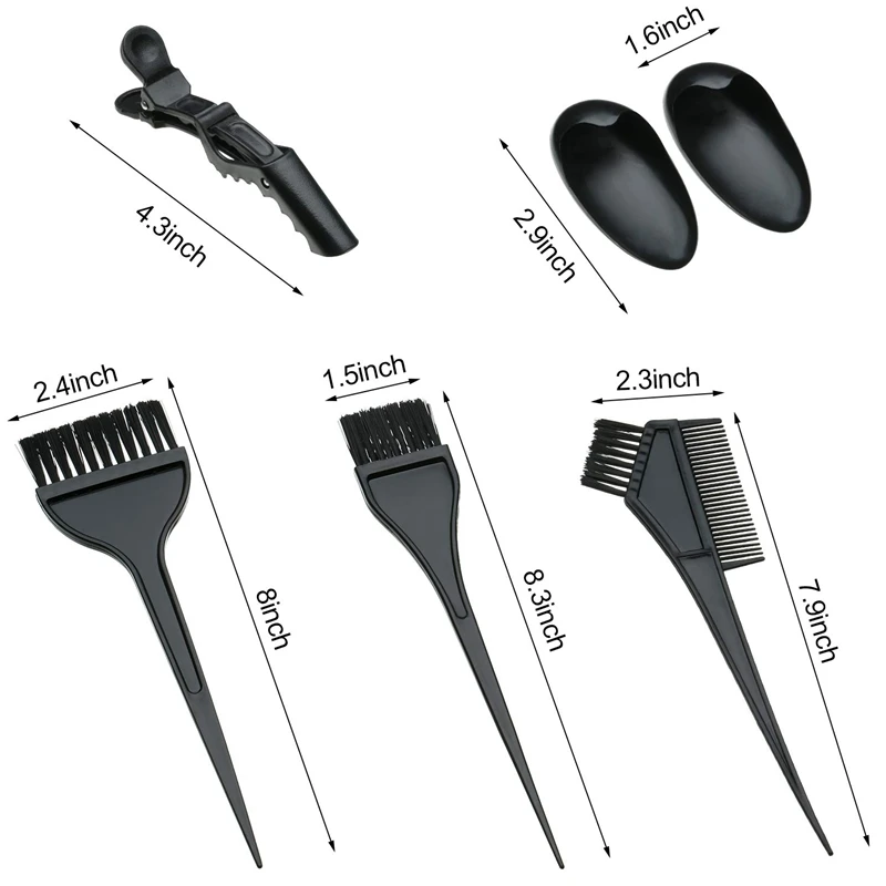 Необходимые аксессуары: Набор для окрашивания волос разработан в полностью черном стиле; Кисть и расческа изготовлены из относительно жесткой и жесткой щетины.
