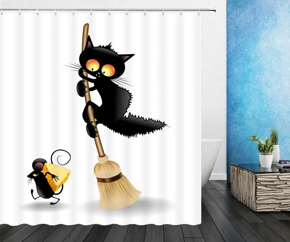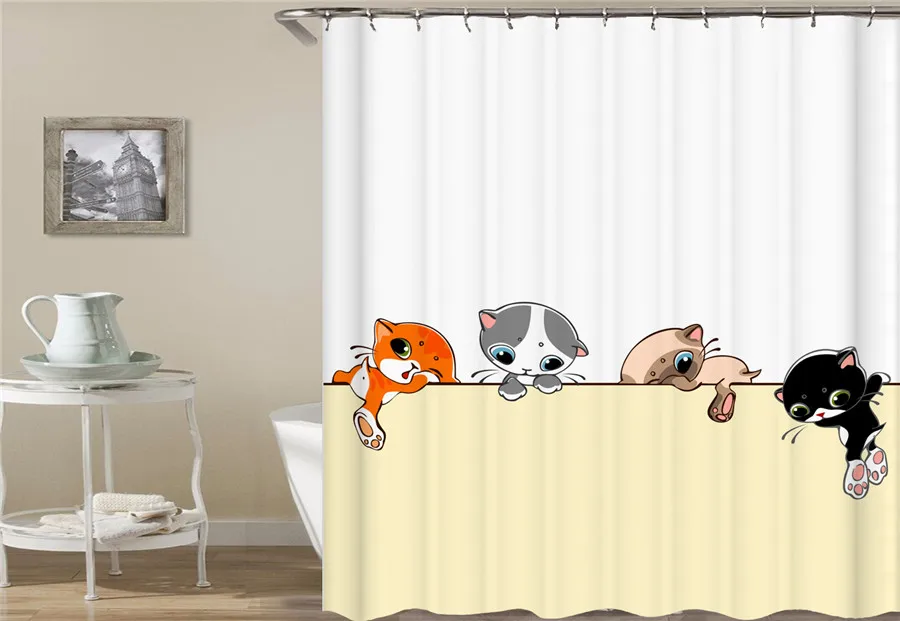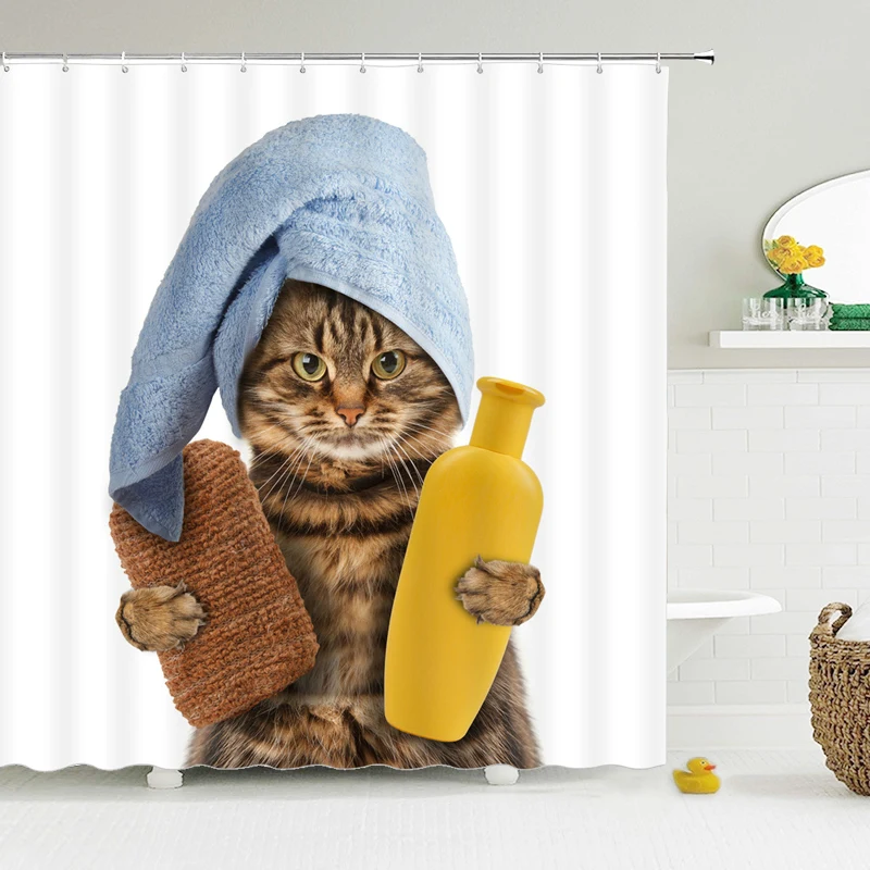 Занавеска для душа с изображением кота, занавеска для душа в ванную комнату, симпатичная тканевая занавеска для душа 3D с крючками, забавная Водонепроницаемая занавеска для душа или коврик