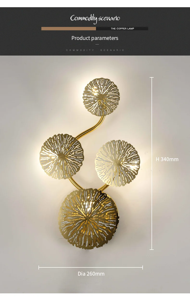 Золотые настенные лампы в форме листа лотоса