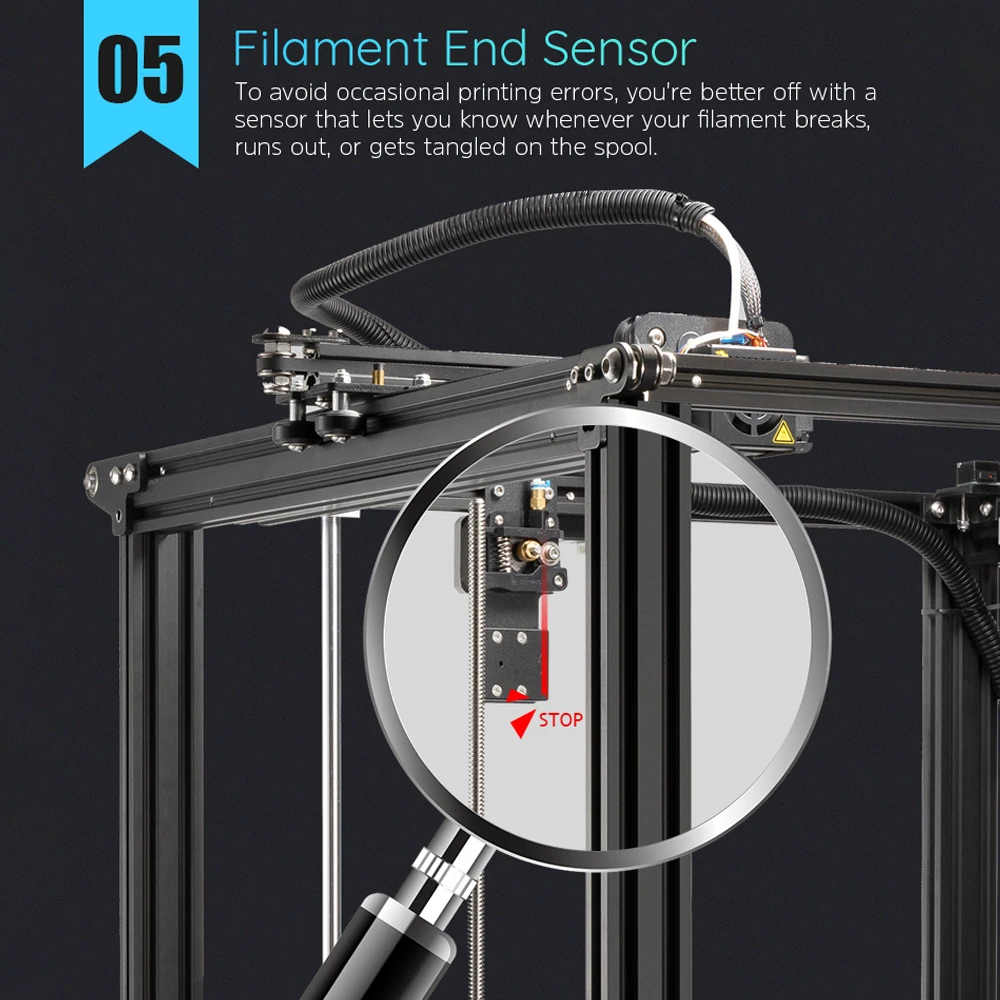 Восстановите функцию печати, когда устройство будет восстановлено, принтер будет продолжать печатать с точки прерывания. Датчик конца нити-добавить датчик обнаружения нити, он имеет высокую чувствительность обнаружения и может автоматически выключить машину, чтобы сэкономить энергию и уменьшить потребление, когда нить разрывается, заканчивается, или запутывается на катушке.