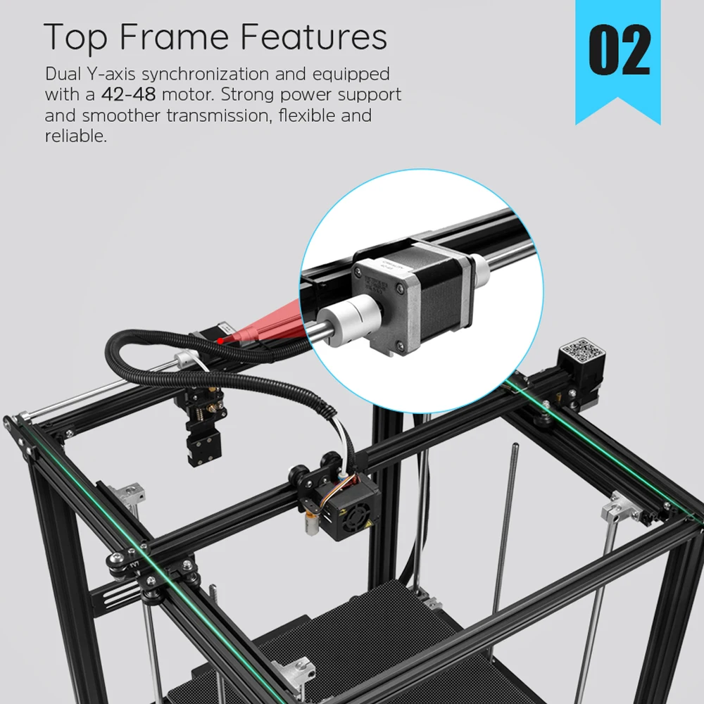 Двойная Синхронизация по оси Y и оснащена двигателем 42-48, сильной поддержкой питания и более гладкой передачей, гибкой и надежной. Стабильная двойная конструкция оси Z, свинцовый винт плавно и стабильно, движение сборной пластины будет более стабильным.