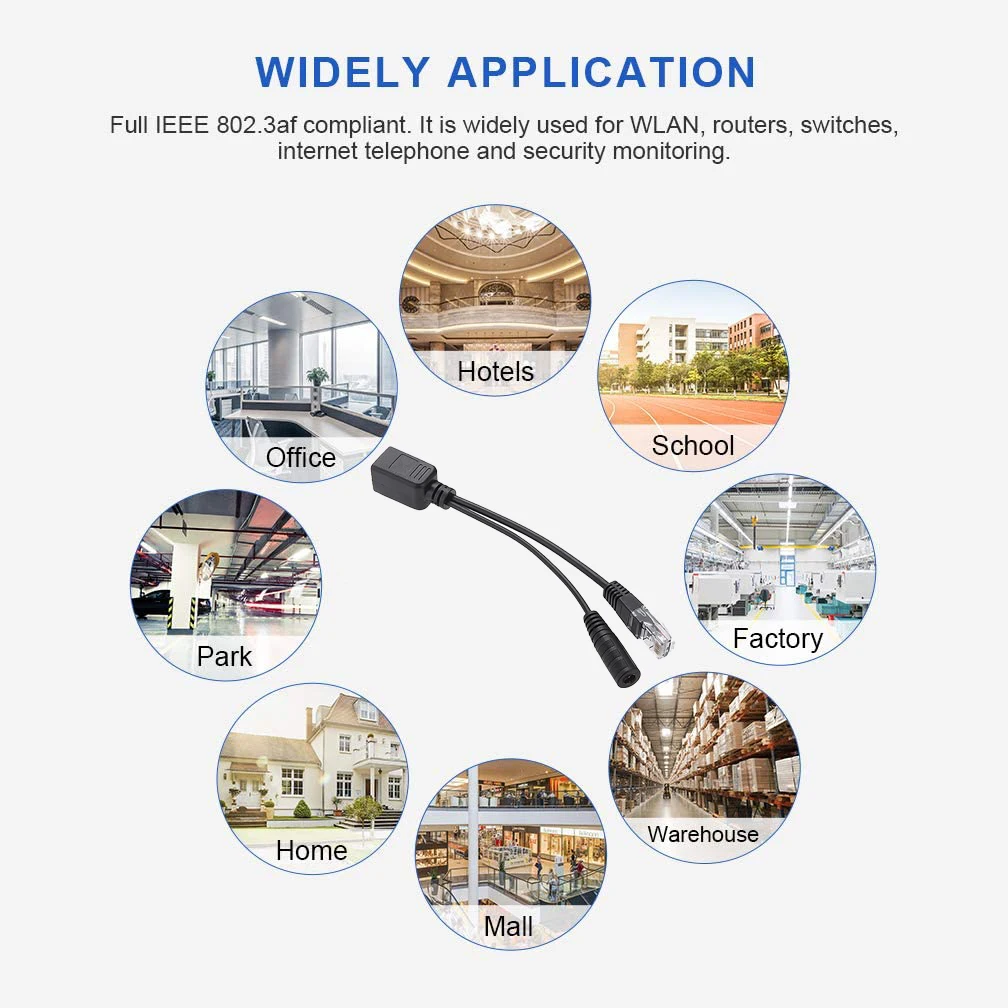 Особенности: Пассивный PoE-означает, что входное и выходное напряжение равны. Преобразует устройства без PoE для включения PoE. Источник питания, требуемый для ввода питания-просто используйте источник питания (настенный трансформатор), который снабжен устройством, которое вы пытаетесь получить. PoE Инжектор И Сплиттер Комплект с 5,5*2,1 мм DC jack / plug. Используйте с ip-камерой безопасности, беспроводной точкой доступа и другими устройствами. Может работать to30-40 метров/100-130 футов (в зависимости от качества кабеля и мощности устройства). Посылка: 1 * кабель-Сплиттер PoE