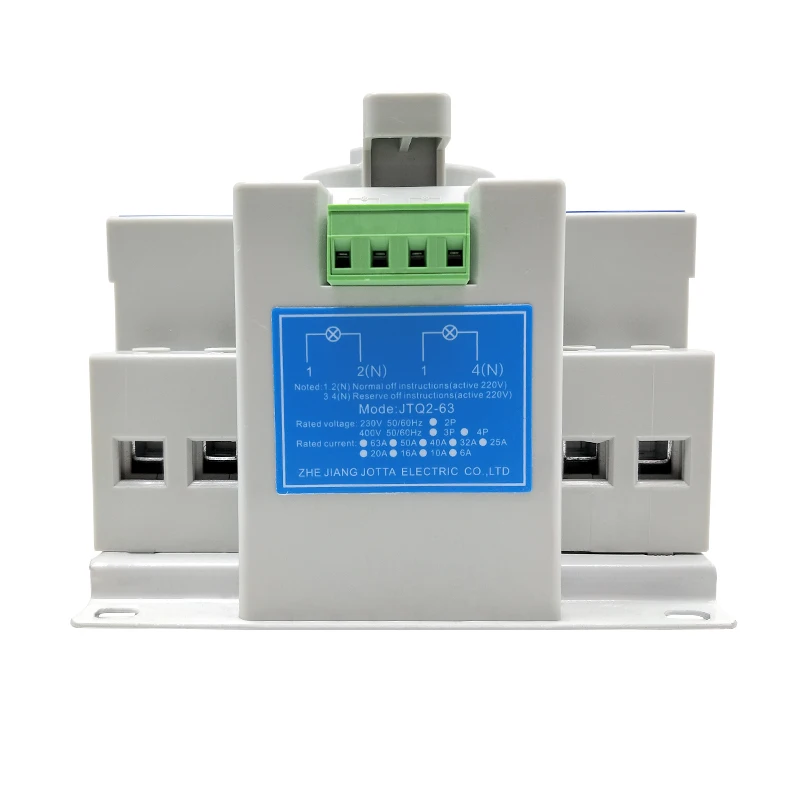Устройство автоматической передачи данных. Подходит для 3 фаз 4 провода (или 1 Фаза 1 провод) двойной электросети с переменным током 50/60 Гц, номинальным напряжением 400 В/230 В и номинальным током до 63 А. При неисправности одного питания (только проверка нормальной фазы напряжения А и резервной фазы напряжения А, только Проверка потери напряжения или фазы потери), автоматическое подключение одной или нескольких цепей нагрузки от одной мощности к другой мощности автоматически для обеспечения нормального питания цепей нагрузки.