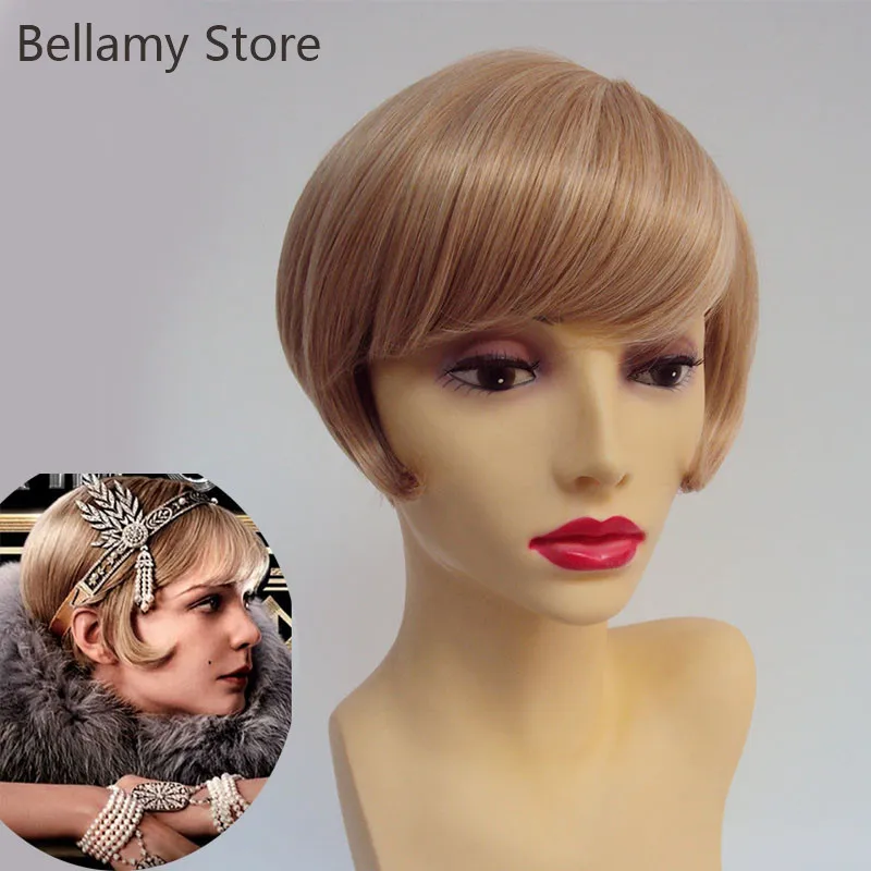 Фильм Великий Гэтсби Дейзи блонд короткие парики Косплей костюмы парик Хэллоуин вечевечерние термостойкие синтетические парики + парик Кепка