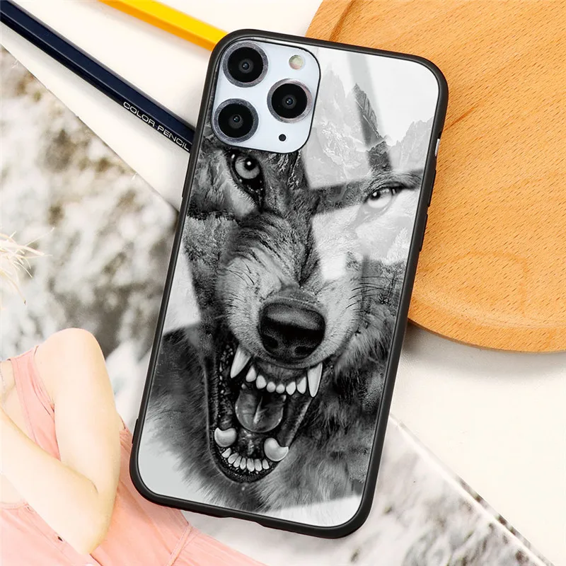 Роскошный мужской чехол для iPhone 6 6S 7 8 Plus, чехол из закаленного стекла с волком лисой львом для iPhone 13 11 12 Pro XS Max Mini XR X