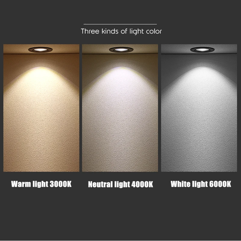 Доступны три цвета светильник (теплый белый светильник 3000K, нейтральный светильник 4000K, холодный белый светильник 6000K)