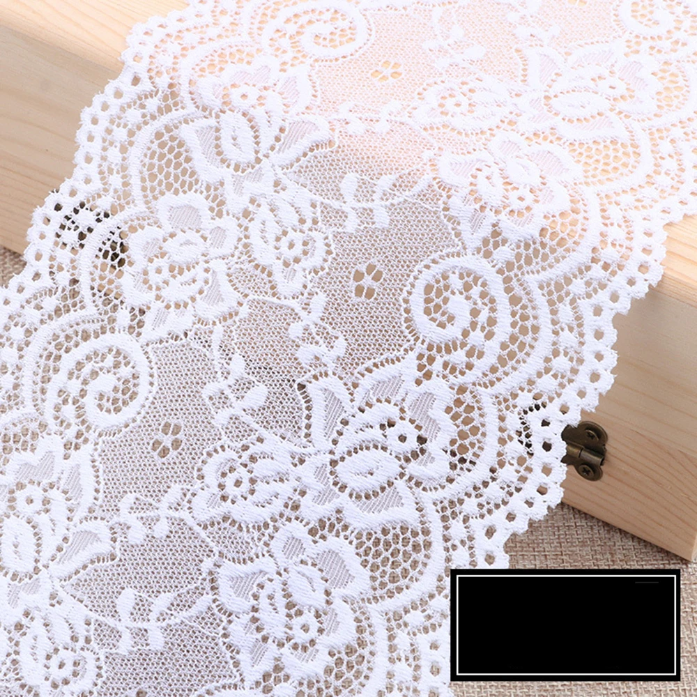 Тип изделия: Широкое кружево стрейч Материал: 90% полиэстер, 10% спандекс Ширина: 18 см Длина: 5 ярдов/10 ярдов Цвет: какой; Черный Использование изделия: нижнее белье «сделай сам», кружево для платья, украшение мебели, украшение ручной работы и так далее.