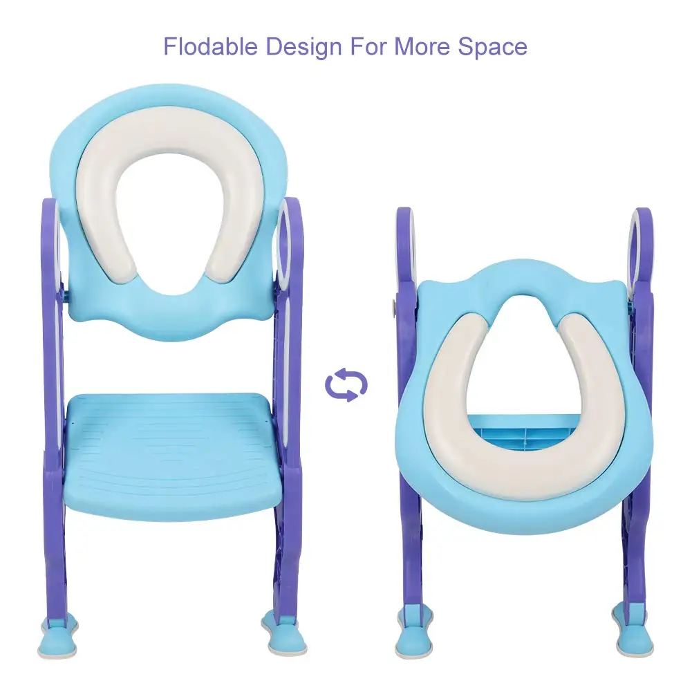 Детское сидение для унитаза AUGIENB Potty с ступенчатой лестницей для мальчиков и девочек ясельного возраста-мягкое стеганое сиденье со складными широкими шаговыми и безопасными ручками-синий и фиолетовый