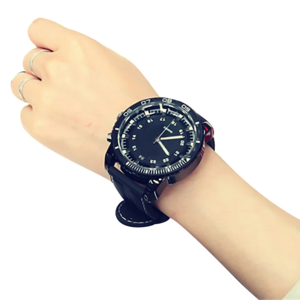 Часы наручные кварцевые с кожаным ремешком, с большим циферблатом