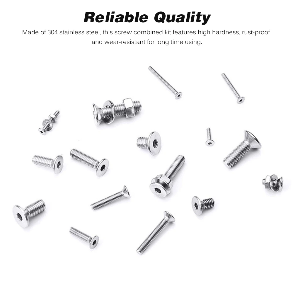 -Надежное качество: изготовлен из нержавеющей стали 304, этот комбинированный набор винтов отличается высокой твердостью, ржавчиной и износостойкостью в течение длительного времени.