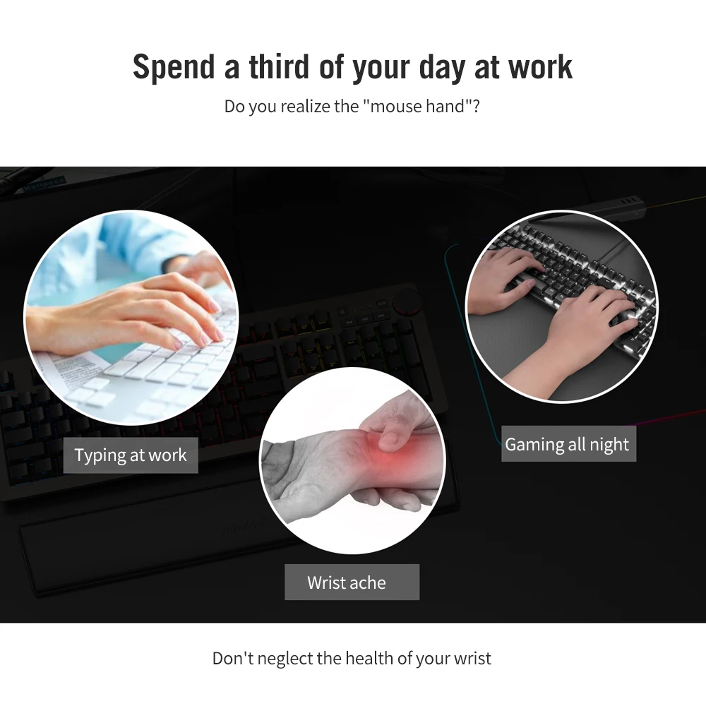 Коврик для запястья клавиатуры подходит для стандартной клавиатуры 104 клавиш, улучшает осанку рук и запястья, избегает проблем с соединением и запястьем и снимает напряжение на локтях и плечах в течение длительного времени использования на компьютере.
