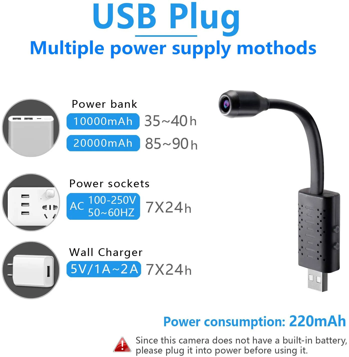 ● Продукт: камера наблюдения U21 ● Поддержка памяти: 8G/16G/32G/64G/128G ● Объем памяти: 0,2 г/ч ● Использование энергии: 230 мАч/ч ● Источник питания: портативный внешний аккумулятор/разъем питания USB ● Размеры: 6,3*1*0,6 дюйма ● Вес: 23,8 г