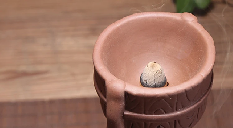 Название продукта: горелка для благовоний Материал: керамика с фиолетовым песком Посылка включает в себя: 1 * зажигатель для благовоний+ 20 ароматических конусов Размер: 22*11 см
