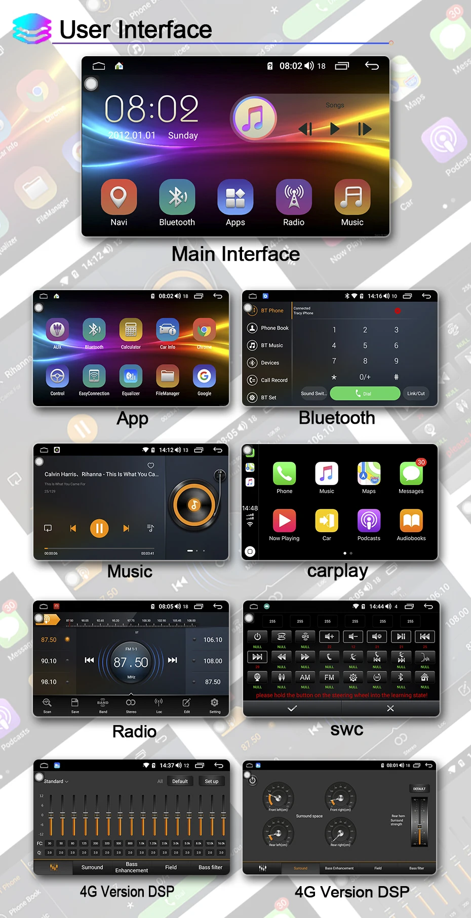 Мы предоставляем обновления для прошивки, программного обеспечения, gps-навигационных карт бесплатно. И благодаря встроенному усилению 4*45 Вт музыка становится четкой даже при высоких объемах. По индивидуальному заказу звуковая с вашими личными предпочтениями с 9 графический эквалайзер. Pop, Rock, Jazz, Classic, Flat, User, Voice. Несколько вариантов настройки позволяют адаптировать аудио опыт по своему вкусу