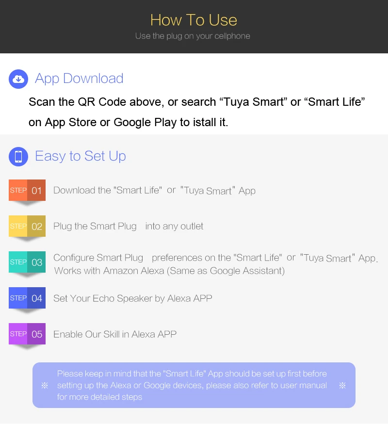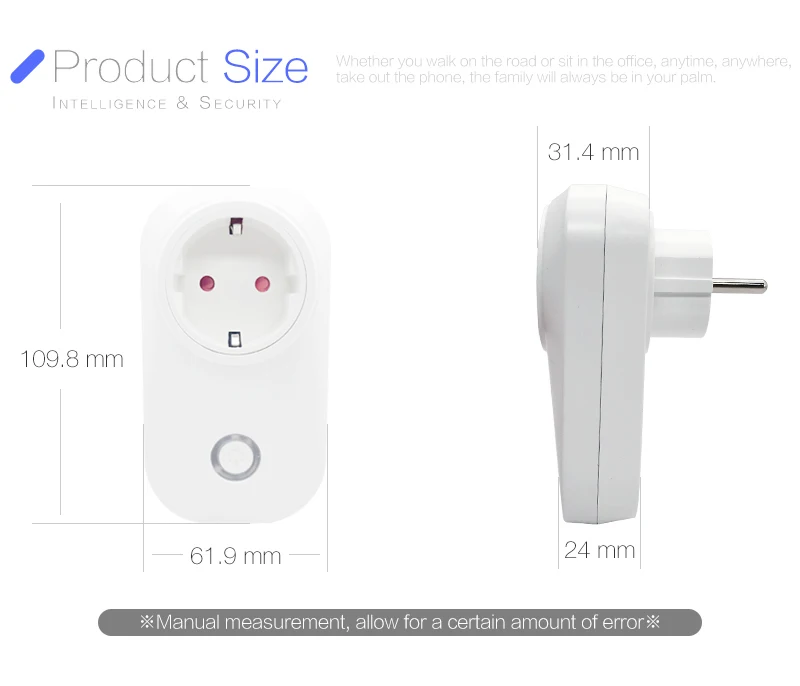 ※ Дистанционное управление через приложение Включите/выключите электрические устройства из любого места. ※ Установка графиков-время Включите и выключите подключенные устройства в указанные времена. Расписайте вентилятор гостиной для включения утром или расписайте лампу вашего ребенка для выключения, чтобы сообщить им, что это время для сна. ※ Установить и забыть-обратный отсчет Функция обратного отсчета смарт-розетки позволяет установить таймер, который автоматически выключается, так что вам никогда не придется волноваться, не отключено ли ваше устройство. ※ Голосовое управление Смарт-разъем работает с Alexa, Google Assistant и Siri(iOS 12,0 или более поздней версии) для упрощения голосового управления. ※ Ваш дом. Одно приложение. Приложение Tuya Smart/Smart Life работает с множеством устройств для умного дома, что позволяет легко управлять вашим домом с любого устройства Android или iOS. ※ Статус синхронизации Синхронизация состояния интеллектуальной розетки с приложением в режиме реального времени. ※ Контроль делений Управляйте умным домом вместе с семьей. ※ Сценарий Включите/выключите комплект умных вилок одним касанием. ※ Не требуется концентратор Смарт-разъем работает с любой защищенной беспроводной сетью 2,4 ГГц без необходимости в отдельном концентраторе. ※ Автоматизация: соединение и взаимодействие с другими домашними продуктами Tuya. Срабатывает вкл/выкл из-за температуры, влажности, условий окружающей среды или другого состояния устройства (необходимо работать с другими продуктами Tuya smart home)