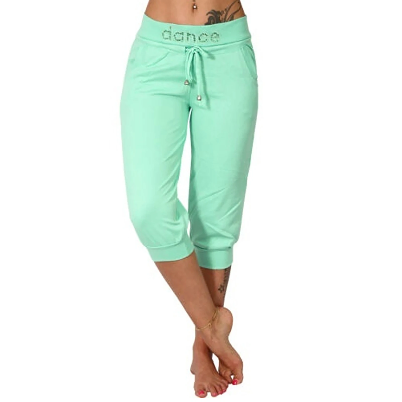 Женские повседневные однотонные спортивные Капри с низкой посадкой и карманами