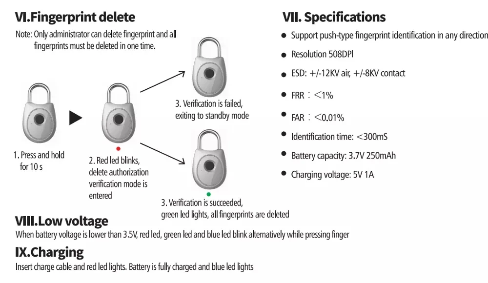 3. Исправлена верфикация, зеленый светодиод-это огни, все отпечатки пальцев удаляются
