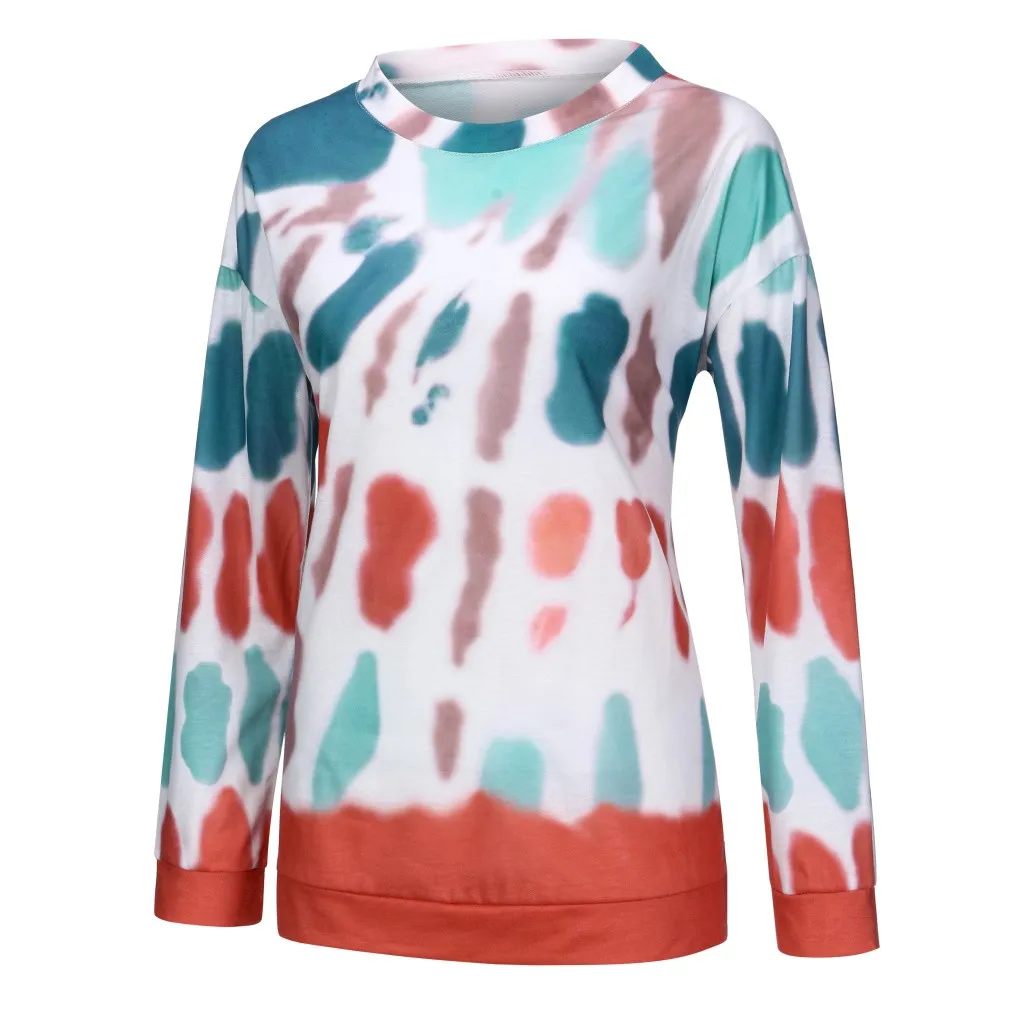 Женская модная блузка с круглым вырезом, топы из хлопка с длинным рукавом размера плюс