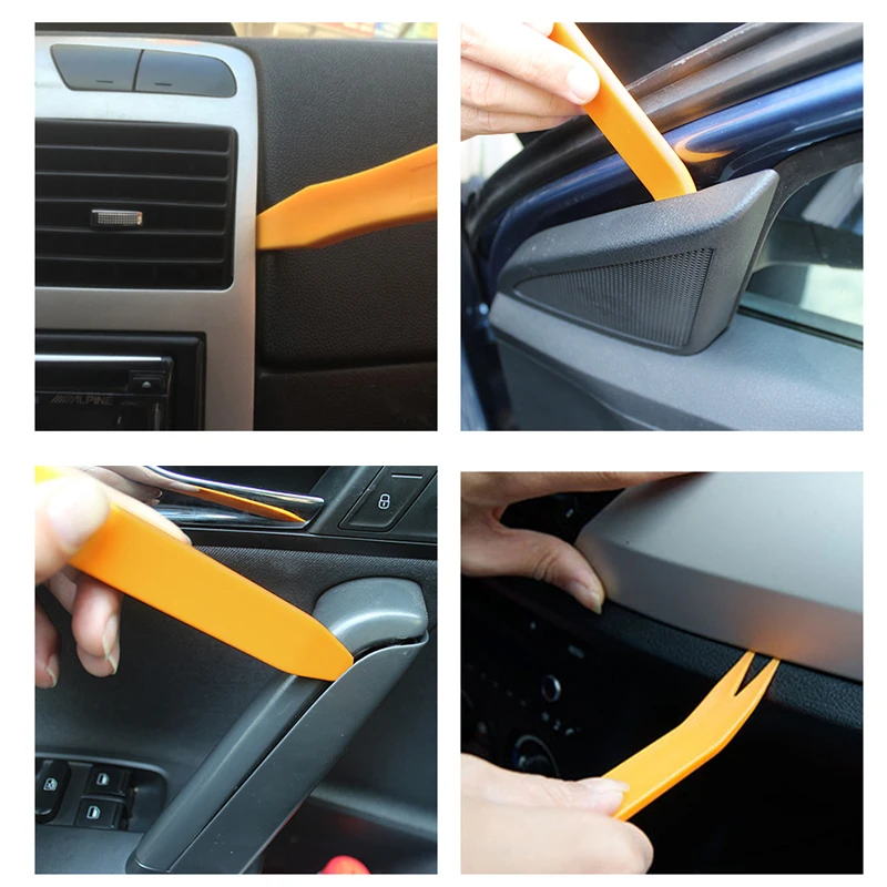 1 Набор инструментов для удаления панели автомобиля (включая 4 шт.) Полезный инструмент для безопасного удаления и установки автомобильного аудио, внешней и внутренней отделки, приборной панели, дверной панели, чтобы не царапать ваш автомобиль Инструмент может эффективно уменьшить вогнутые и выступающие шрамы, оставленные с помощью винтового ножа для удаления Это может уменьшить возможность истирания внутреннего украшения автомобиля Инструменты предназначены для любой модели автомобиля Цвет: оранжевый Материал: пластик Посылка включает в себя: 1 x набор инструментов для удаления панели автомобиля (4 шт./компл.)