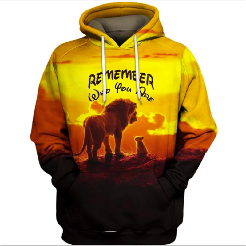 Бренд Disney мужские европейские и американские толстовки 3D цифровой Принт толстовки мультфильм Симба Король Лев мужская одежда с длинным рукавом MIC