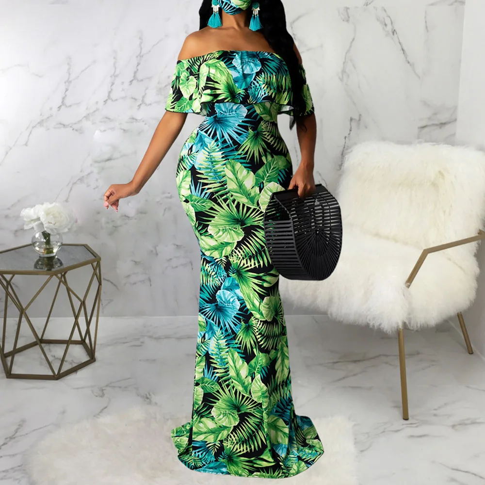 Сексуальные женские кружевные Длинные вечерние платья 2020, африканские летние Клубные платья русалки с открытыми плечами, высокая талия, длинное платье