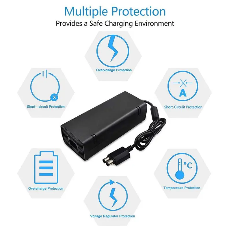 Глобальная Универсальная совместимость: функция автоматического напряжения 100-240 В позволяет адаптеру использоваться по всему миру, что делает его идеальным для всех 360 консолей по всему миру, также это идеальный выбор для путешествий по всему миру.