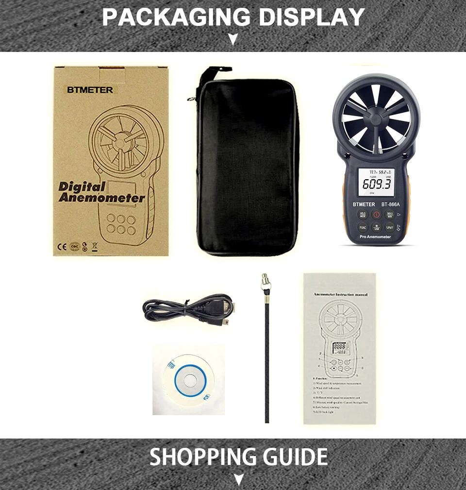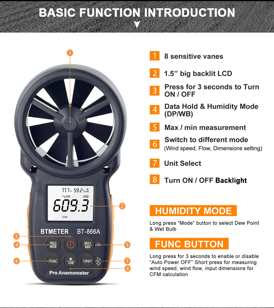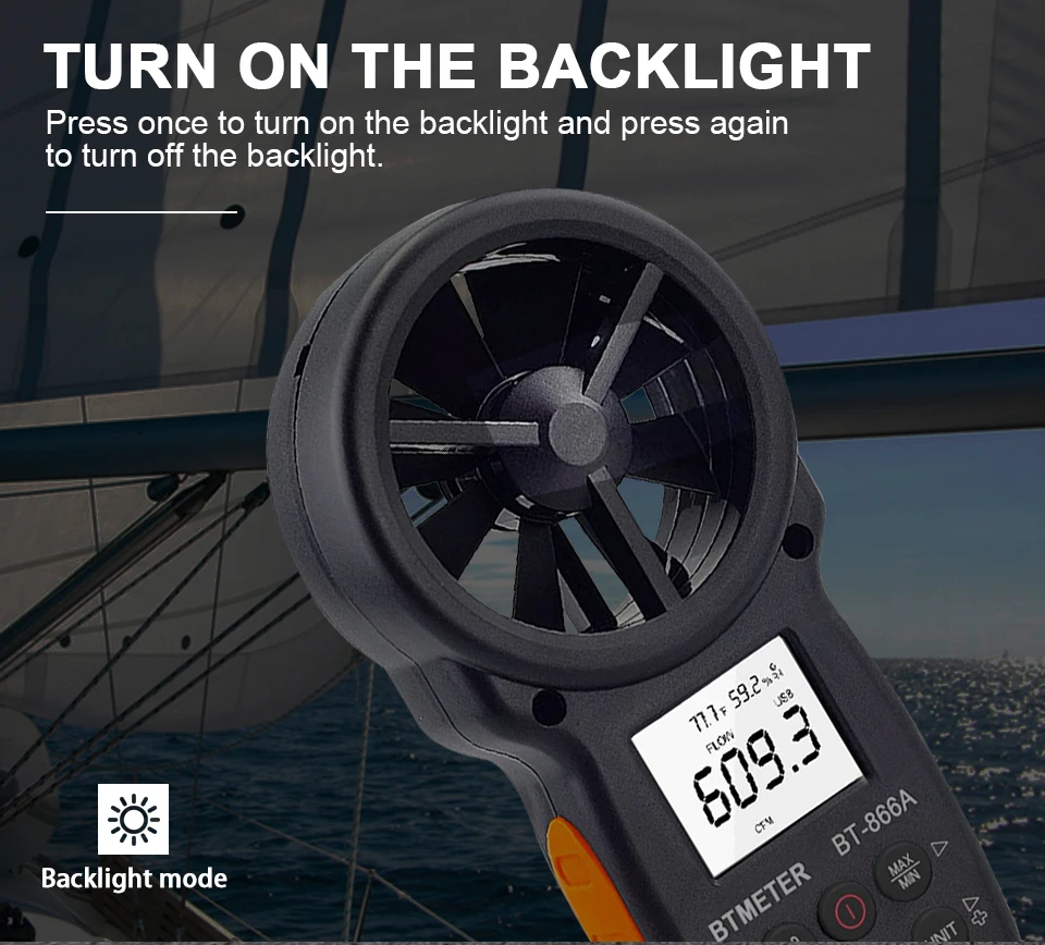 Цифровой анемометр ручной BT-866A расходомер воздуха датчик скорости ветра точно измеряет температуру ветра/скорость ветра охладитель CFM с макс./мин/AVG, Подсветка ЖК-дисплей для парусного спорта, HVAC, полета
