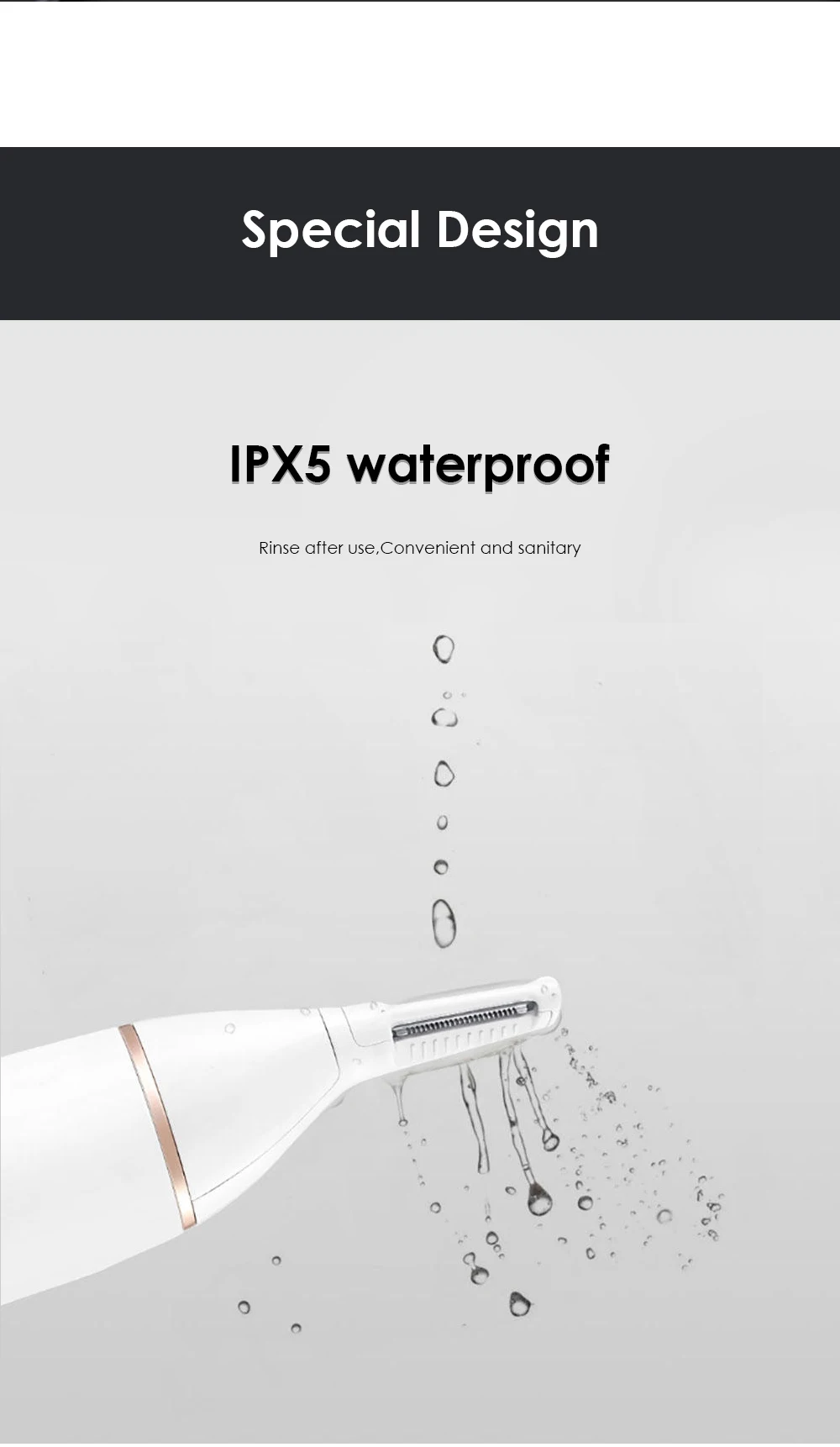 5. Eliminate the traditional need of scissors to remove the unsightly nostril and ear hair, higher security provided.
