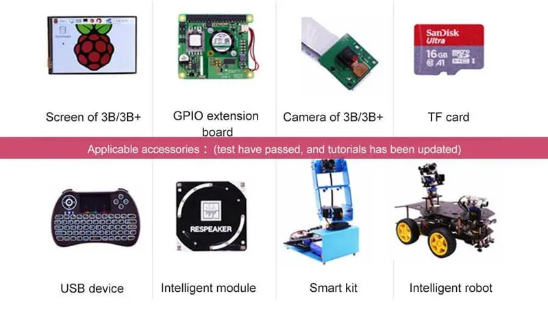 2019 официальный последние Raspberry Pi 4 Модель B, он принимает 1,5 ГГц 64-разрядный четырехъядерный процессор Процессор и Broadcom BCM2711. Он оснащен ОЗУ 2 ГБ/4 ГБ, портом USB 3,0, 40 контактами GPIO, портом Micro HDMI, портом CSI camera, портом DSI display и портом Ethernet. Разница заключается в том, что плата 4B обладает Bluetooth 5,0, принимает зарядный порт Type-C и поддерживает Gigabit Ethernet. Большинство производительности лучше 3B/3B +. Он может быть использован для создания различных умных роботов, планшетных ПК или более DIY продуктов.
