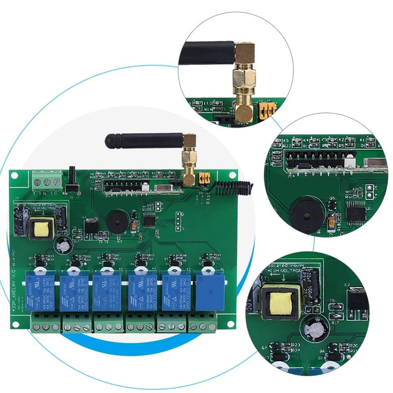 Этот 6-канальный Многофункциональный радиочастотный приемный контроллер предназначен для отправки открытого сигнала и близкого сигнала на 6 реле.