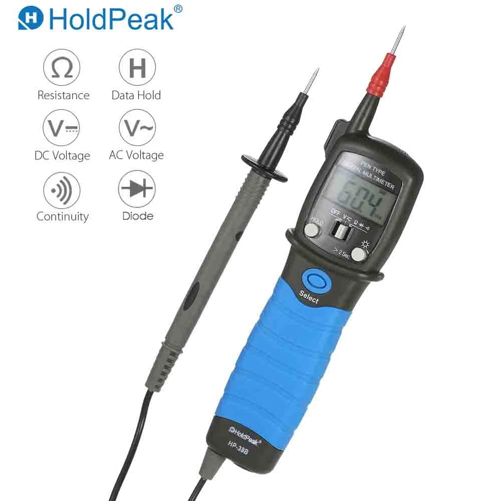 Портативный мультиметр типа ручки, используемый для тестирования напряжения постоянного и переменного тока, сопротивления, положительного напряжения диода падения и звуковой непрерывности.