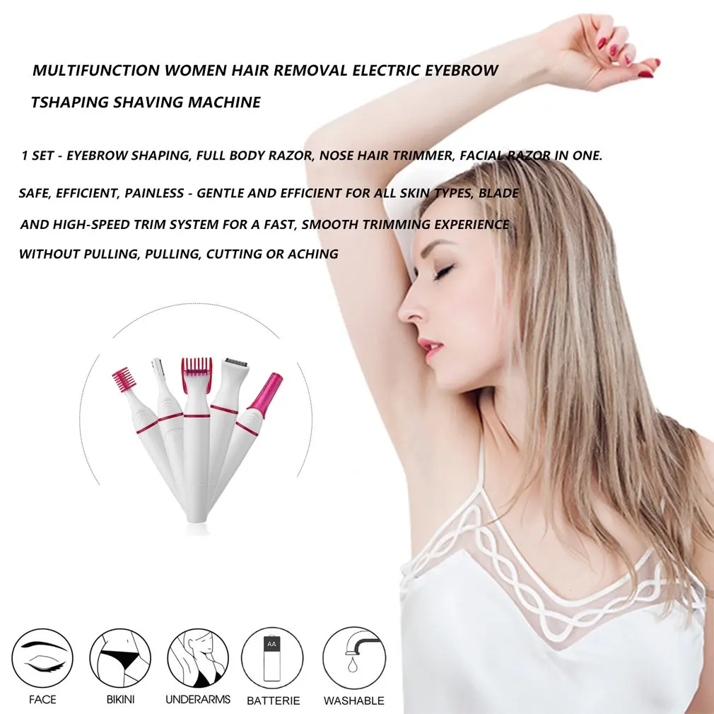 5 в 1 Набор-Коррекция бровей, бритва для тела, триммер для носа, бритва для лица в одном. Этот продукт приносит вам лучшие технологии для безболезненного удаления волос.