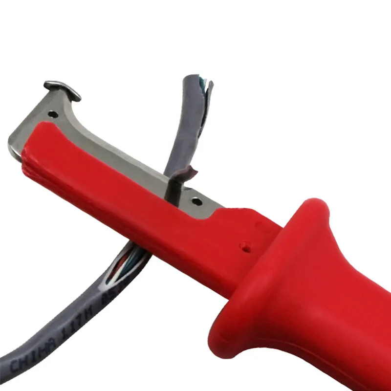 1. Фиксированное лезвие. 2. Отсутствие повреждений сердечников проводников. 3. Лезвие из нержавеющей стали. 4. Эргономичная безопасная ручка. 5. С прозрачным защитным колпачком. 6. Подходит для зачистки и резки круглого ПВХ Кабеля, Резинового Кабеля, силиконового кабеля и кабель PTFE. Материал лезвия: углеродистая сталь Материал ручки: АБС-пластик Длина ручки: 105 мм Диапазон полосы: 0-50 мм Размер: как на фотографии Посылка входит: 1 инструмент для зачистки проводов с крышкой