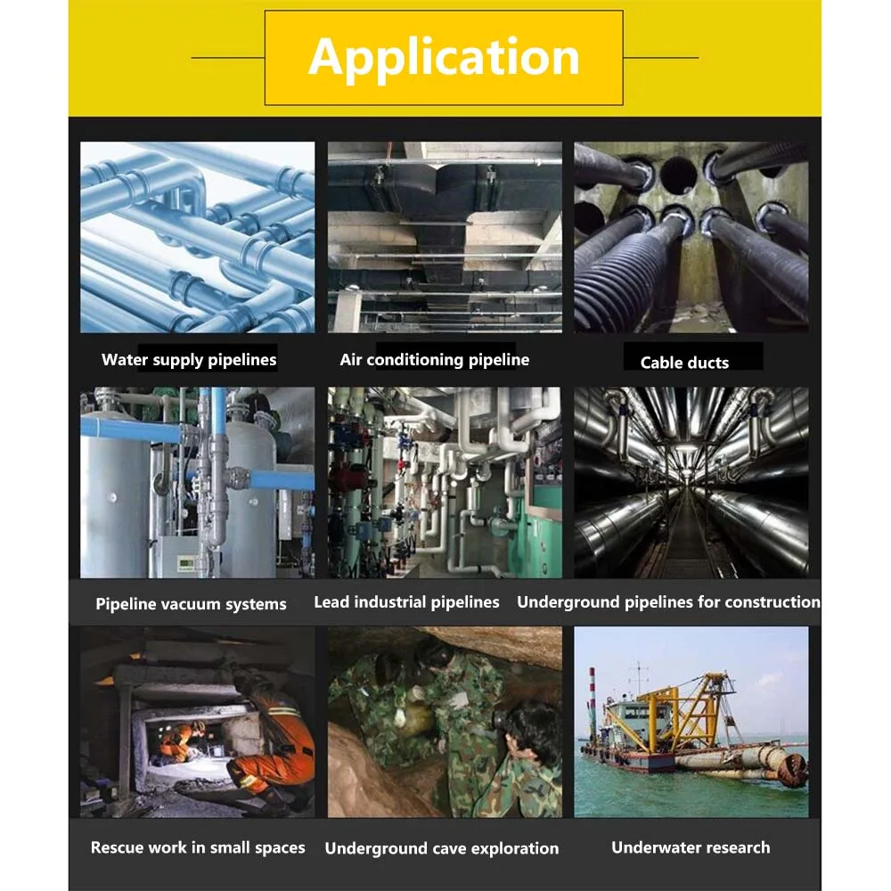 Трубопроводы водоснабжения, Трубопровод Кондиционирования Воздуха, кабельные каналы, вакуумные системы трубопровода, свинцовые Промышленные трубопроводы, подземные трубопроводы для строительства, спасательные работы в небольших пространствах, подземные исследования пещеры, подводные исследования.