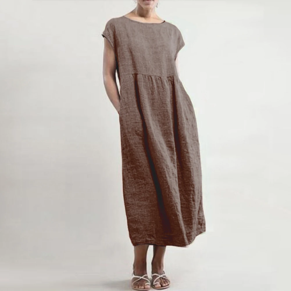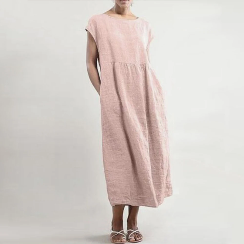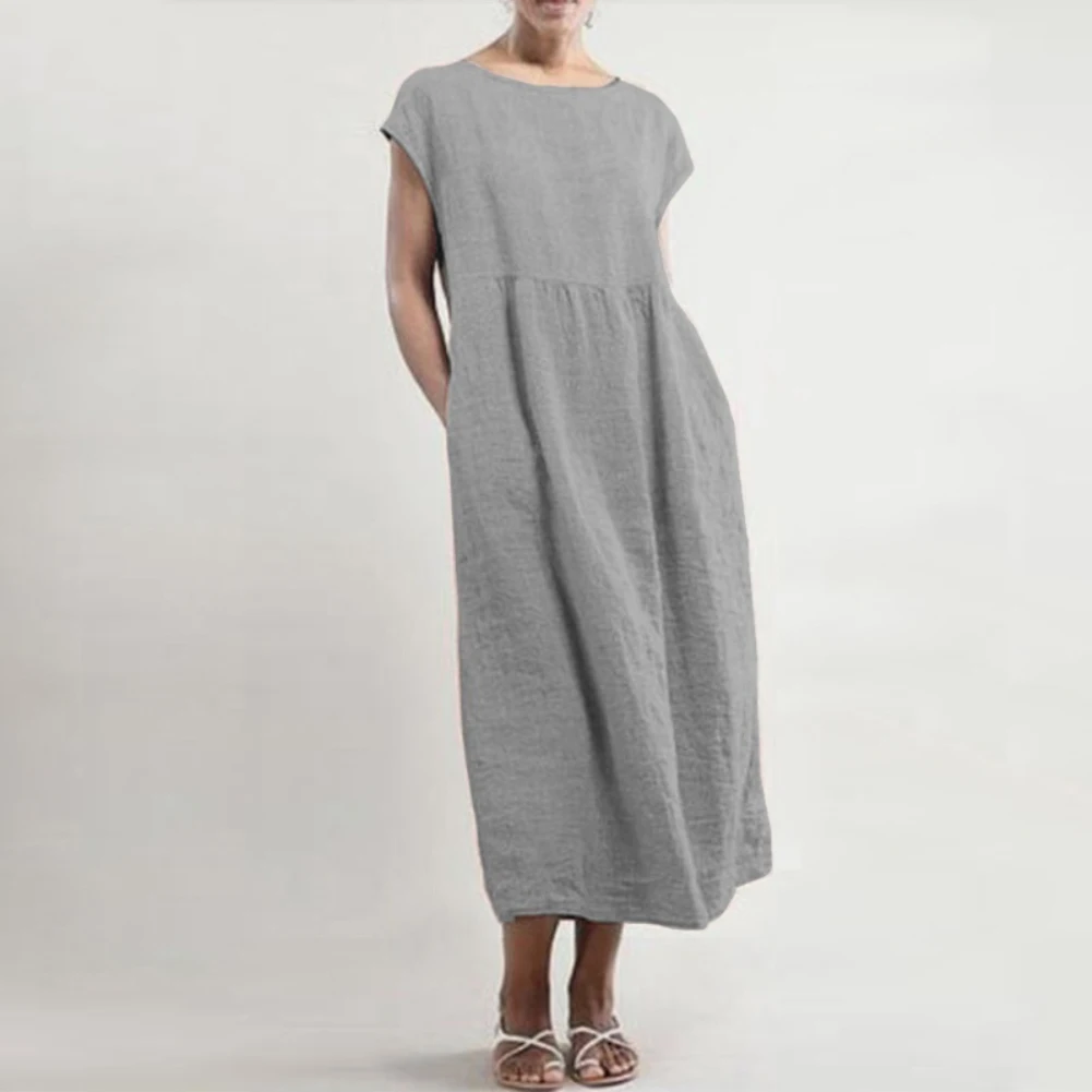 Повседневное женское летнее однотонное мешковатое пляжное платье-Кафтан миди с коротким рукавом