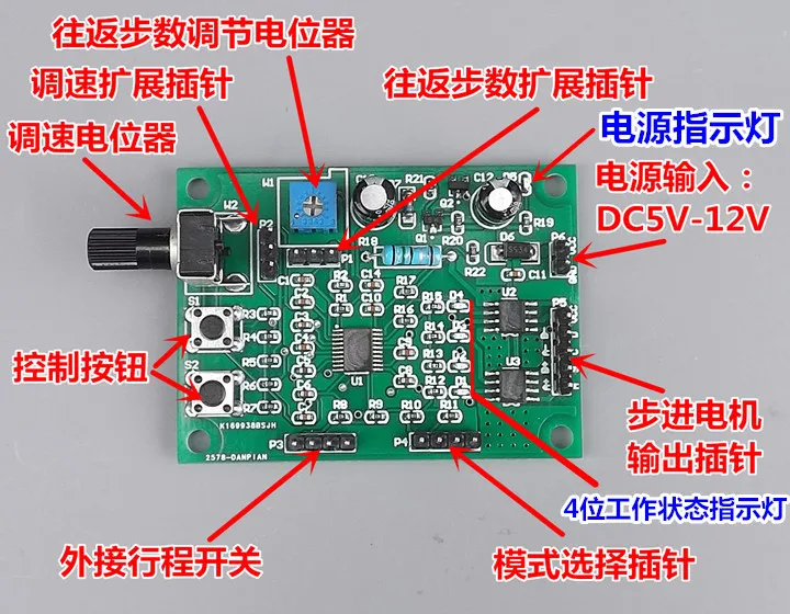 Мульти-функциональный микро шаговый двигатель накопители контрольная плата, который может управлять 2-фазный 4-проводной и 4-фазный 5-проводной Шаговый двигатель s.Плата управления диском имеет 4 режима работы: [1] обычный режим 1 [2] обычный режим 2 [3] режим пробежки [4] автоматический режим круговой поездки【Размер платы привода 】 длина * ширина * высота 60*44*16 мм