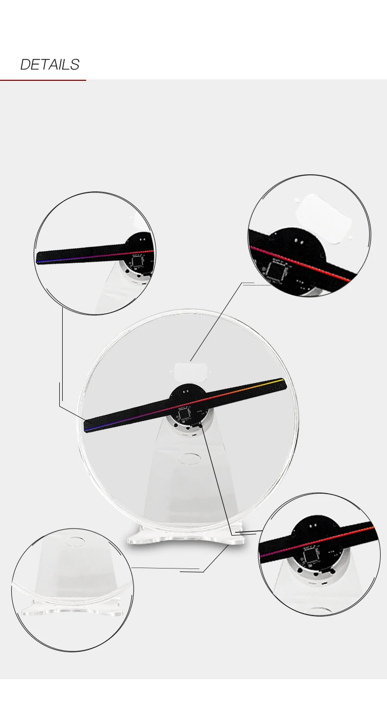 Communication: WIFI Panel Size: Diameter 330mm LED Quantity: 320pcs Pixels: 640*640 dots LED Life time: 10,000 hours LED Color:Full Color Power :20W-30W View angle:150° Product Size: 345*330*138mm Input Voltage: AC100-240V 50/60Hz Support Format: MP4/ AVI/ RMVB/ MKV/ GIG / JPG/ PNG Weight:3.5KG