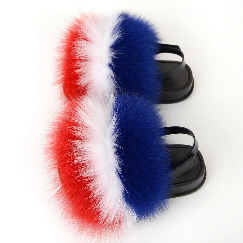 Детские сандалии с ремнем; Плюшевые тапочки с лисьим мехом для девочек; Нескользящие домашние меховые шлепанцы; Детская обувь для младенцев; Милые плюшевые Тапочки