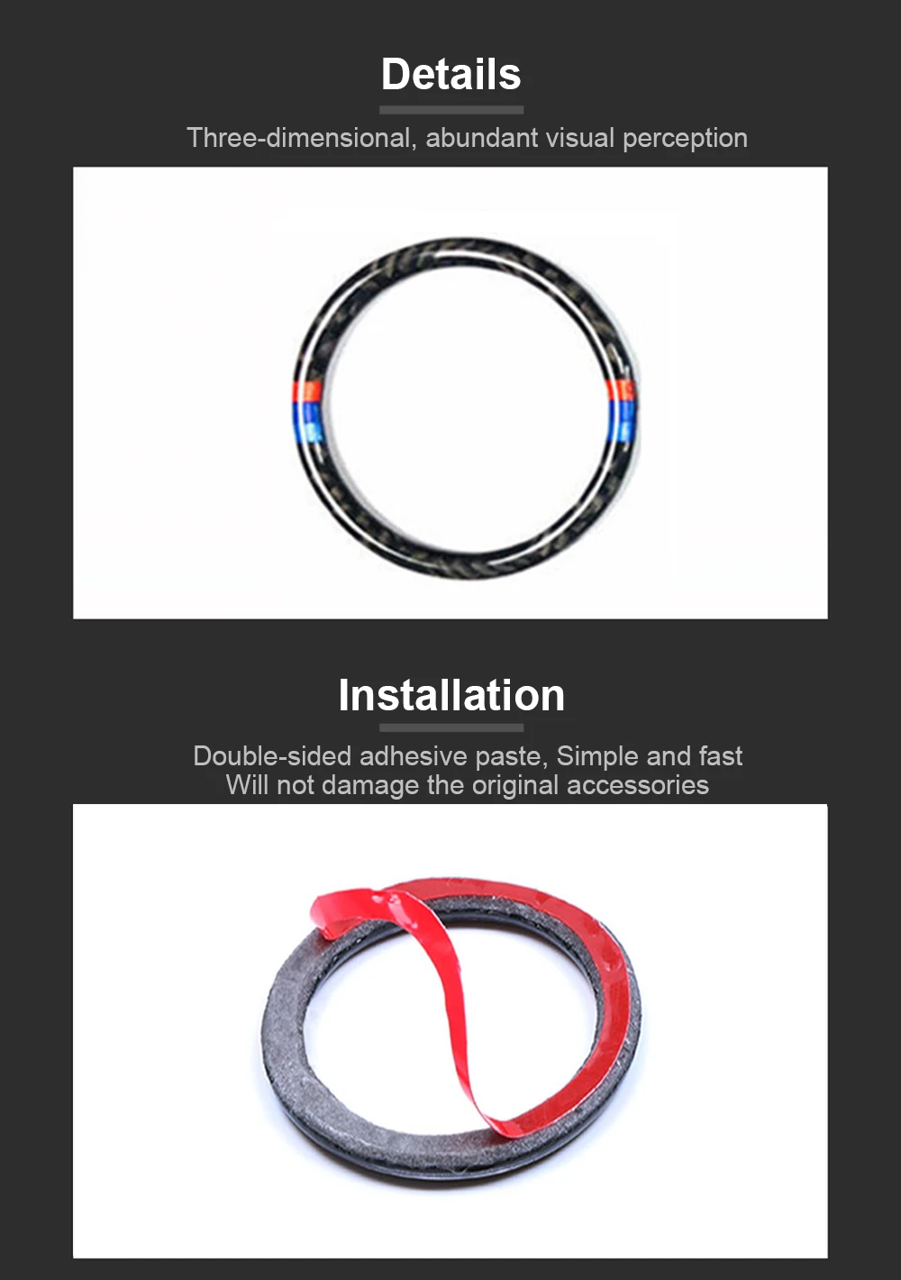 Особенности: 100% новый и высокое качество. Самоклеющиеся и съемные, термостойкие, без усадки, водонепроницаемые, долговечные. Плотно крепится к автомобилю, не выцветает, не повреждает краску. Вес: около 0,77 г Материал: ПВХ Посылка включает в себя: 3 × наклейка на кнопку запуска двигателя автомобиля Подходит для BMW E90 E92 E93 3 серии