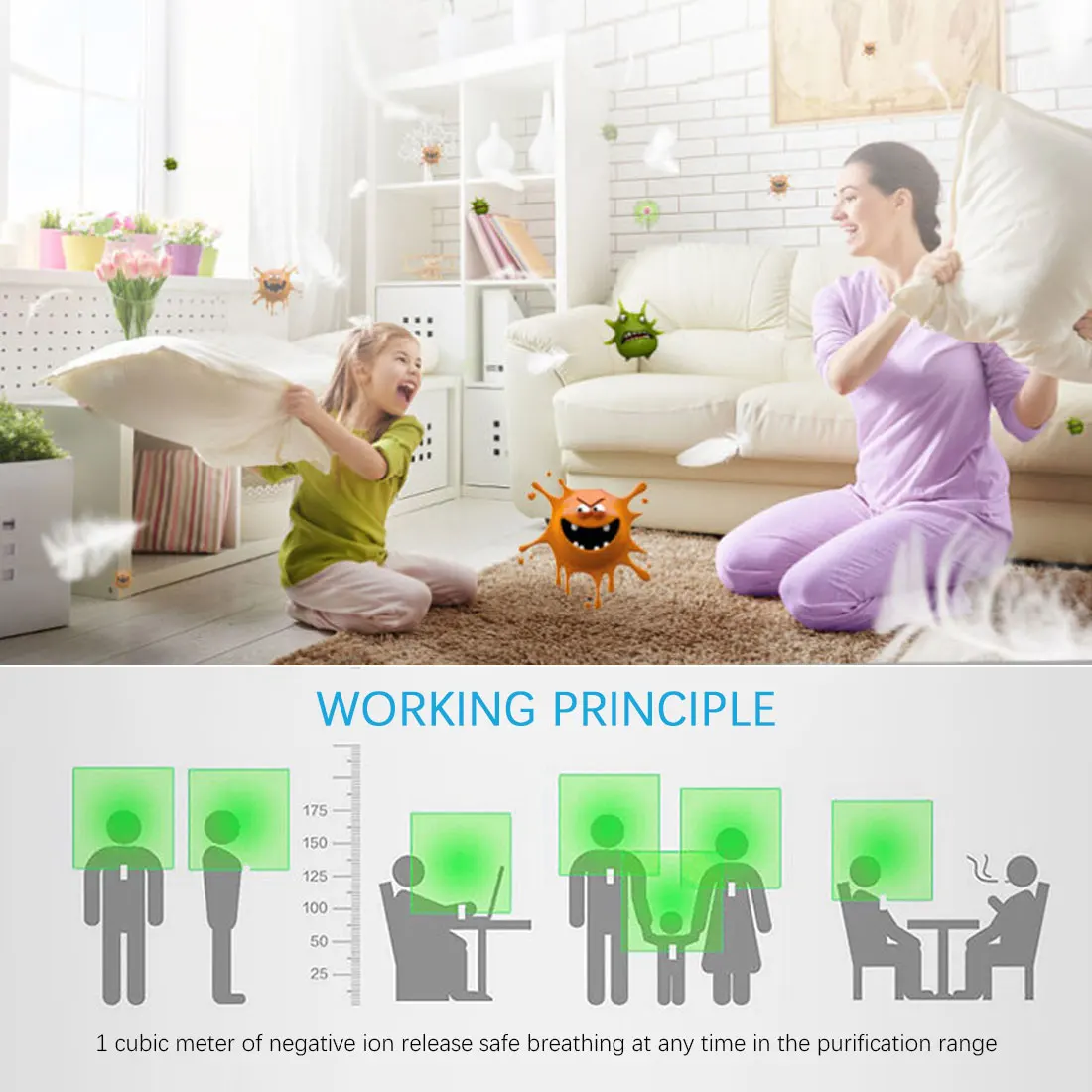 Генератор отрицательных ионов может эффективно поглощать формальдегид, удалять вторичный дым, пыль и не потреблять материал на всю жизнь.