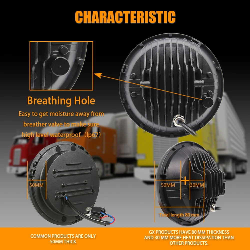 Расшифровка: 45 Вт, 6000K, 7 дюймов, Круглый, 50000 часов, IP67 Мощность светодиода: чип CREE Рабочее напряжение: подходит для автомобилей 12 В Цветовая температура: 6000 К Луч: Дальний свет 45 Вт 3400 лм, ближний свет 30 Вт 2600 лм Материал: литой алюминиевый корпус Объектив: прочный ПК Цвет корпуса: черный Цвет глаз ангела: желтое или белое кольцо, вы можете изменить его самостоятельно. Размер: (7 дюймов) Срок службы: 50000 часов Сертификация: CE SAE IP67 DOT E-MARK В комплект входит: 2 светодиодные фары
