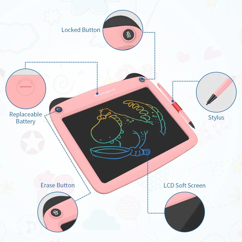 1. Датчик давления, очищение одним щелчком, повторное написание, Защита окружающей среды, защита глаз, линейка масштаба, постоянно меняющийся наконечник ручки; 2. Настройте ключи против вытирания, поэтому не беспокойтесь о неправильном творческом способе. 3. Зеленый и здоровый, без бумаги, без подсветки, без дисплея электричества; 4. Съемный аккумулятор на батарейках, низкое энергопотребление и длительный срок службы, аккумулятор может быть написан в десятки раз.