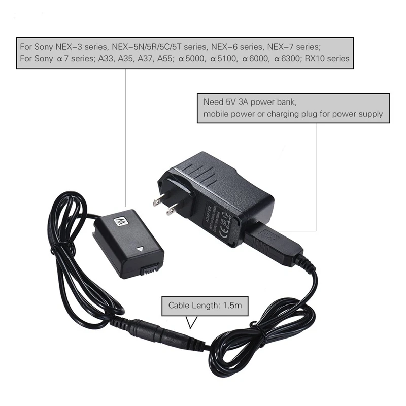 Зарядный разъем 5 В 3 А для источника питания, в значительной степени продлевает время съемки вашей камеры.