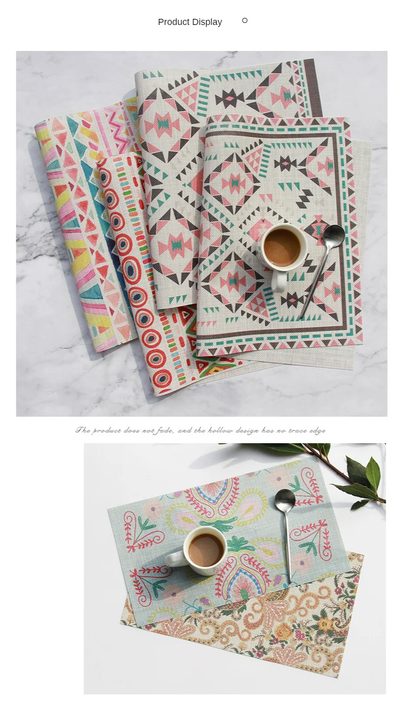 Салфетки набор из 4 двойной коврики для обеденный стол виниловые полиэстер Ретро богемный, в этническом стиле Бохо декоративные элементы для столовых приборов Кухня стол 12 ''x 17"