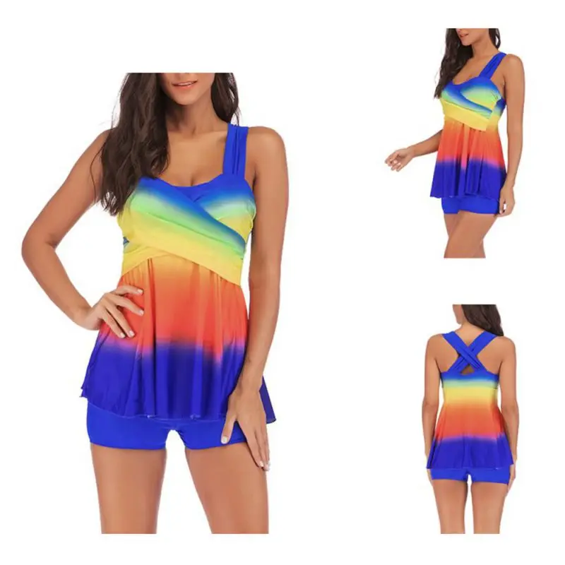 Женский купальный костюм с пуш-ап, большой бюст, сексуальный бикини, градиент размера плюс, юбка, купальник, S ~ 5XL